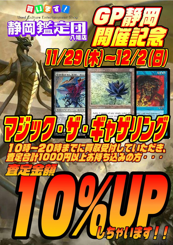 それに合わせまして近隣店であるわが静岡鑑定団では期間中の11/29(木)~12/2(日)にて買取アップキャンペーンを開催します!!