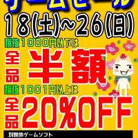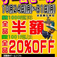 皆様こんにちは。レトロゲーム担当です。 10月24日(月)~10月31日(月)の期間中、 ゲーム売り場でセールを開催します。   …