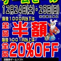 皆様こんにちは。レトロゲーム担当です。 レトロゲームに関する年末年始イベントのお知らせです! お知らせ その① 12月24日(土)・12月25日(日)の2日間、 ゲーム売り場でクリスマスセール …