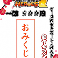 みなさんこんにちは! トレカブログです! 大好評につき、即完売してしまった ドラゴンボールヒーローズおみくじが またまた登場です! 1回300円で★4のカード(全てキズ有り)が出てきます! 今年最後の運試し …