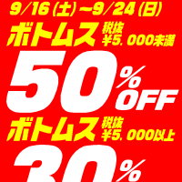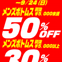 古着屋PEPからセールのお知らせ その2です!! 9/16(土)~9/24(日) ボトムス 税抜¥5000未満 50%OFF!! ボトムス 税抜¥5000以上 30%OFF!! 上記の記事に買取価格がある場合の注意事項 …