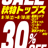 古着屋PEPからSALEのお知らせです!! 9/16(土)~9/18(月) 秋物トップス 30%OFF!! 😀 長袖シャツ、ロンT、スウェット、パーカー、ニット、薄手アウターなどが対象です!! 上記の記事に買取価格が …