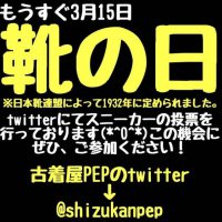 もうすぐ3月15日 靴の日です!! 1932年日本靴連盟によって定められました。 というわけで、 古着屋PEPのツイッターで投票を設けました!! 皆様、ぜひご参加下さい。 twitter→https://t …