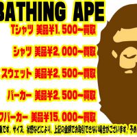 古着屋PEPからメンズ衣料の買取情報です!! A BATHING APE 買い取りお待ちしております!! 上記の記事に買取価格がある場合の注意事項 ※記載の買取金額は静岡鑑定団八幡店の店頭での買取価格となり …