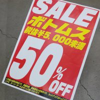 古着屋PEPからSALEのお知らせです!! 6/22(土)~6/30(日) 税抜¥5,000未満のボトムス 50%OFF!! ※日程は営業日単位。割り引き券などとの併用は不可。取り置き、特価衣料は対象外。 上記の記事に買 …