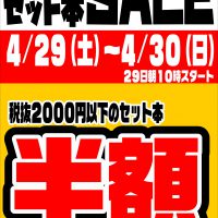 4月29日(土)・30日(日)の2日間 セット本SALE開催しますっっっヾ(*´▽`*)ノ しかも29.30日はガラポンもありでお得な2日間です!! 是非是非ご来店お待ちしておりますヽ(〃v〃)ノ コミックツイッター♪h …