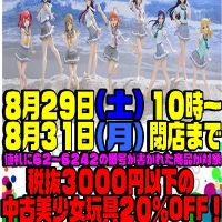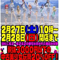 2月27(土)、28(日)日に 美少女玩具のSALEやりますよ~! 税抜3000円以下の美少女玩具20%OFF! 気になるあの商品をお得に買うチャンスかも? 一部対象外商品もありますのでご注意下さい。 上記の記事に買取価 …