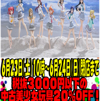 6月23日開店~6月24日閉店まで税抜3000円以下の中古美少女玩具20%OFFのSALEやりますよ!