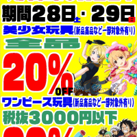 月末28日・29日に緊急セール開催いたします! 今回のセール内容はワンピースと美少女が対象です! 一部、新品商品等割引き対象外商品がありますのでご了承ください! 詳しい内容はスタッフにお問い合わせください 上記の記事に買 …