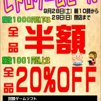 皆様こんにちは。レトロゲーム担当です。 10月24日(月)~10月31日(月)の期間中、 ゲーム売り場でセールを開催します。   …