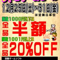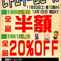 皆様こんにちは。レトロゲーム担当です。 12月25日(土)~12月31日(金)の期間中、 レトロゲームのセールを開催します。   …